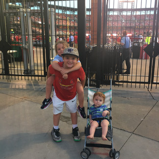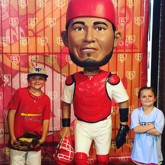 A quick two hours later we were in St. Louis, with just enough time to drop our stuff at the hotel and catch the Redbird Express to the game. This was fun for several reasons: we didn't have to drive, park, or pay for parking, but mostly it was great scenery and people watching! Thanks to our race-car driver/ bus driver, we made it to the game in record time (not a great feeling on a bus)! We hit the Ballpark Village and the fun began, first it was slightly hot (like my face was melting off hot), the kids were in rare form (a SCARY thing for those of you who know my children) and the gates were not open yet! We eventually got into Busch Stadium and did almost a full lap before my children had seen 347 things they NEEDED!
